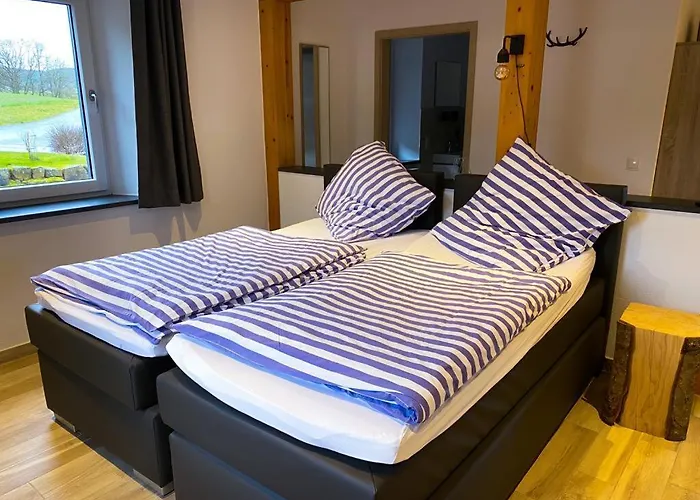 Vulkaneifel ist auch knapp 4 Kilometer von diesem 35 m^2 großen Apartment entfernt gelegen. Das Zentrum von Brucktal ist zu Fuß in 5 Minuten zu erreichen. Das ring°werk ist in circa 10 Autominuten Entfernung von der Ferienwohnung Beim Hooch Traud.
